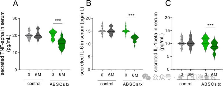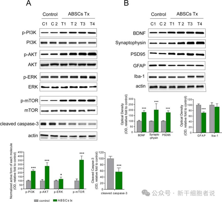 这些促炎细胞因子会加重突触丢失与神经元挫伤,进而促进神经退行性变。接头中不雅察到炎症因子水平显赫裁减,请示ABSCs可发达抗炎作用,保护伞经元免受进一步挫伤。干细胞(尤其是自体血着手的干细胞)的免疫转机特色已有充分文件证据,这大约不错解释神经炎症的削弱以及后续判辨功能的改善。