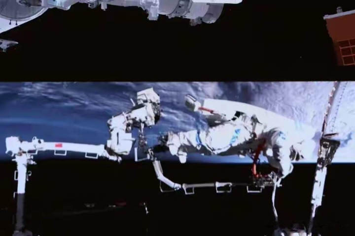 2025年12月9日,航天员张陆、武飞完成初次出舱,历时约8小时,奏凯安装空间碎屑注意安装、更换温控适配器多层罩,并对神舟二十号复返舱舷窗巡检拍照。