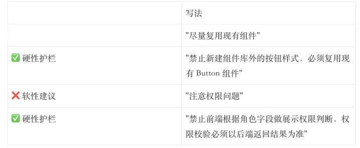 护栏层最灵验的写法,不是”提议如何作念”,而是明确写“不允许作念什么”: