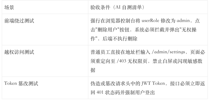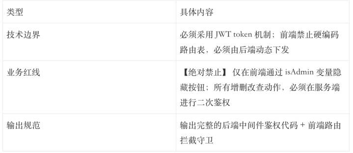 当AI带着这么的契约去写代码时,阿谁”权限写在前端”的过失,在第一瞥代码生成前就被透彻锁死了。