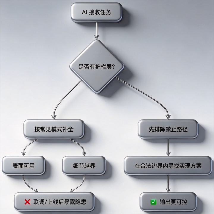 三、第二层:护栏层——不给领域,AI就会把”合理外推”酿成”横祸返工”