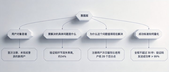 二、第一层:意图层——先界说”为什么作念”,不要一上来就说”作念什么”