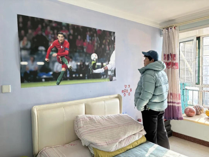 二男儿回家后,乔守芬把小男儿的房间腾出来,还相当装修了一遍,墙上贴着C罗的海报,飘窗上放着篮球足球,打理得鸡犬不留。