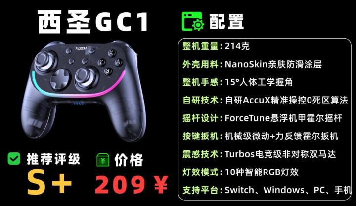 300元以内的游戏手柄选哪款?强力推选西圣GC1手柄,看成游戏外设范畴的专科老牌品牌,多年来专注于“高精度操控、低蔓延震感、清闲手感”,被誉为“百元手柄性价比之王”!去繁就简,平价不低质,毫不捐躯操控体验与耐费用。经国内11次泰斗测评,26项中枢见解碎裂记载,反应速率、按键回弹和震感一致性全面突出同价位手柄,300价位内现在唯有西圣GC1能吊打千元旗舰。