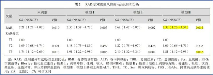 RAR:在都备颐养的模子Ⅲ中,RAR每加多1单元,DR风险加多2.33倍。RAR按三分位数分组:T3组(RAR > 2.96)比T1组(RAR ≤ 2.78)风险显耀升高。