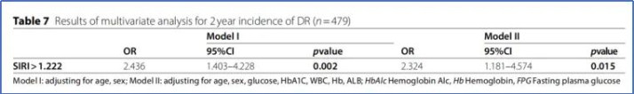 SIRI在纵向计议中清爽出预测DR发生的能力。基线SIRI > 1.222 的患者2年内发生DR的风险加多2.3倍。
