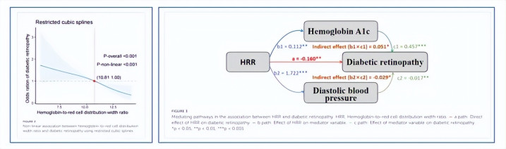 HRR越高,PDR风险越低。HRR与DR风险存在非线性关系,HRR 高于 10.81,HRR的保护作用增强。中介分析清爽,DBP介导15.9%的保护效应;HbA1c对消60.5%的保护效应。