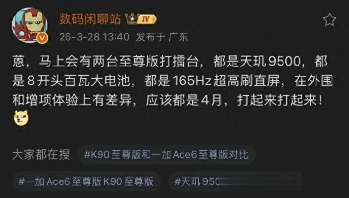 · @数码闲扯站 指出有两款超旗舰机型将径直竞争,社区大都觉得所指恰是这两款