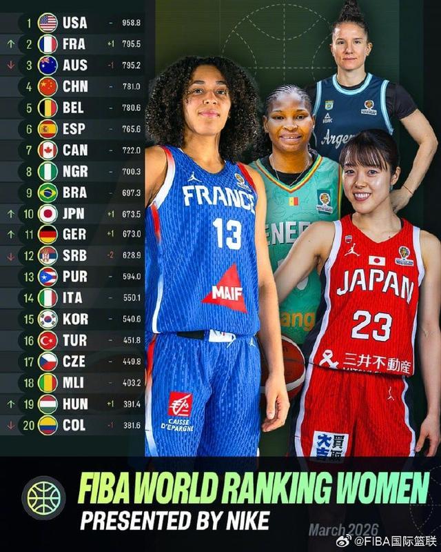 直播吧3月21日讯 女篮全国杯经验赛一番死战之后,FIBA更新了女篮全国排行,小九体育在线直播官网平台中国女篮陆续位列第4。