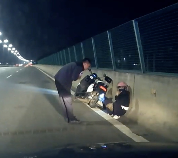 3月15日晚,广东珠海,高栏港一高架上熙来攘往。珠海市公安局水上分局民警苏江涛扩充当务驾车返程时,迷糊在路旁看到了一个东说念主影。凭借事业敏锐度,宽心不下的他,毅力掉头复返检讨情况。
