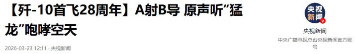 【歼-10首飞28周年】A射B导 原声听“猛龙”吼怒空天-2026-03-23 12:11·央视新闻
