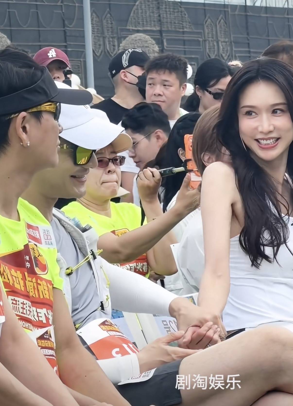 海潮鬈发、夸张的耳饰、精熟的妆容,似乎有一种让东谈主健忘她是来赛马拉松的错觉。