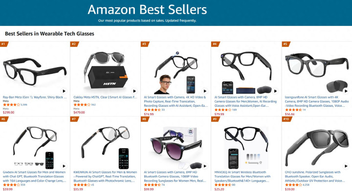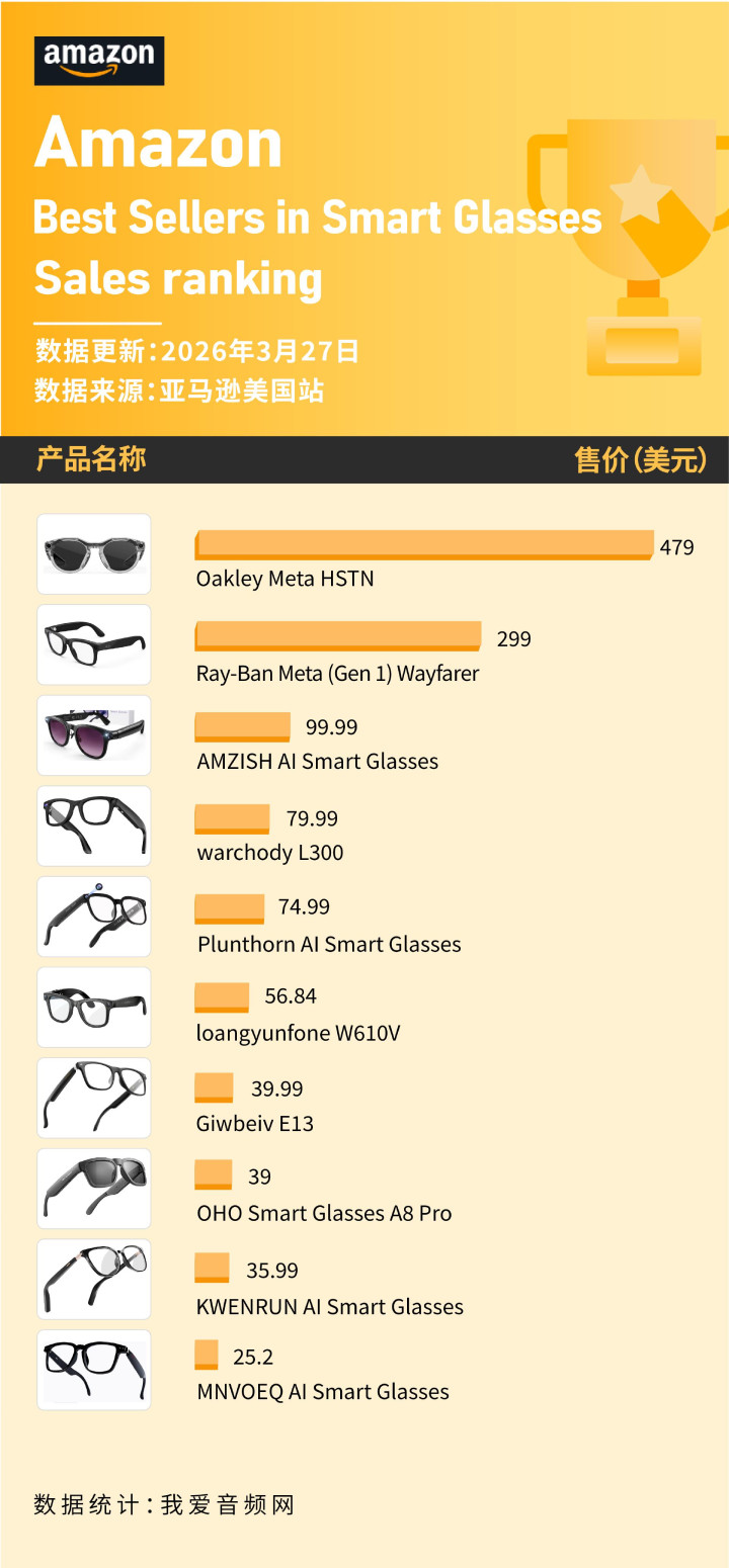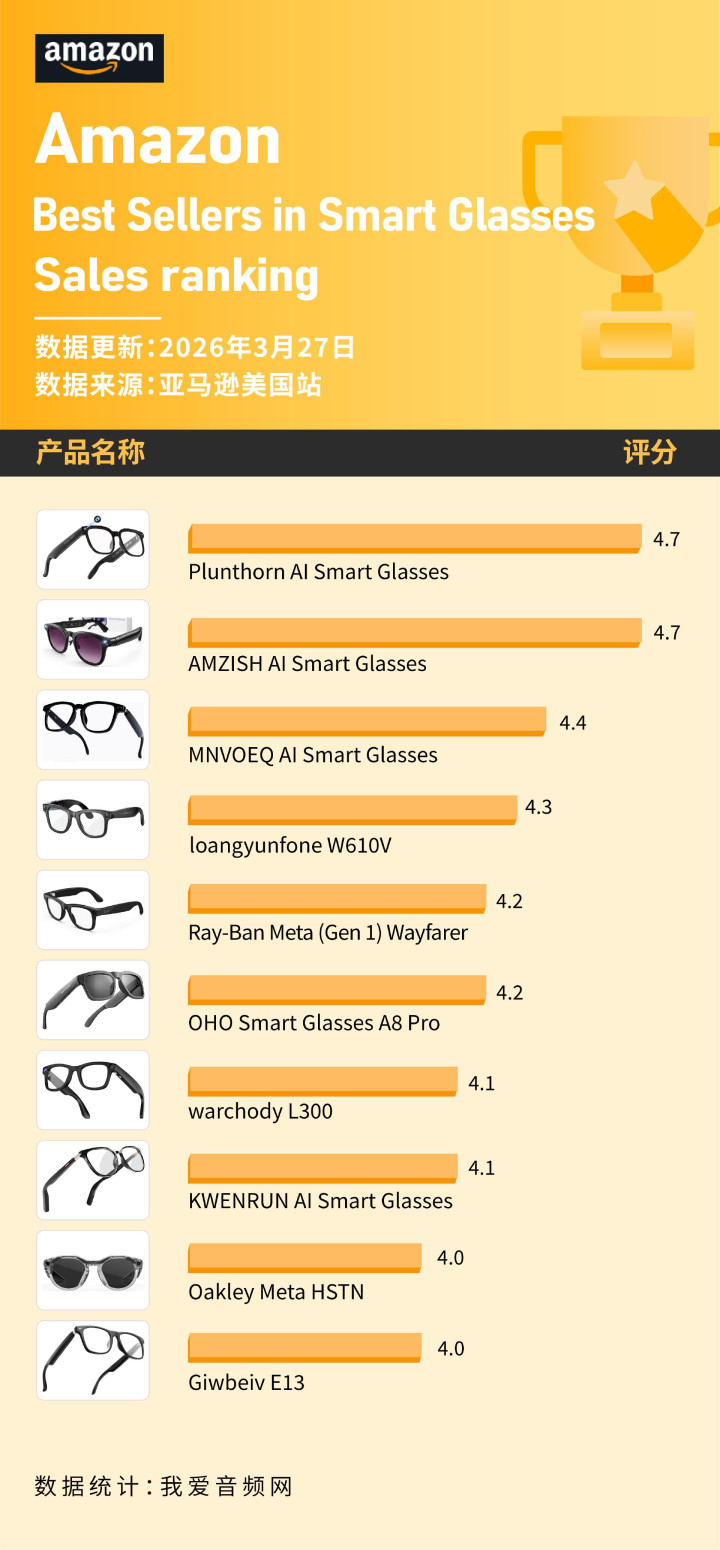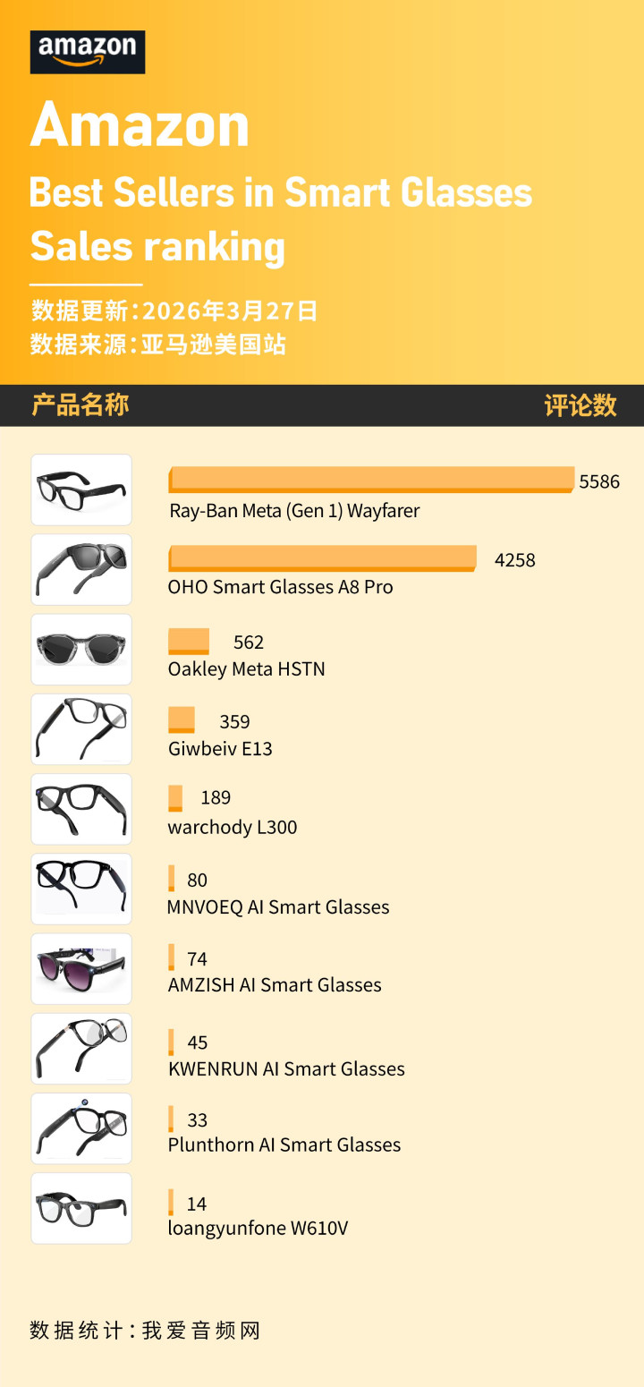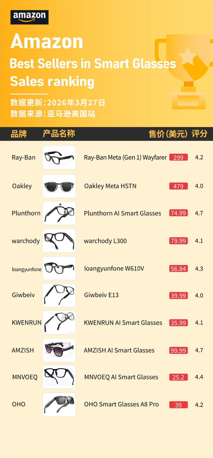 好意思国亚马逊2026年3月智能眼镜榜