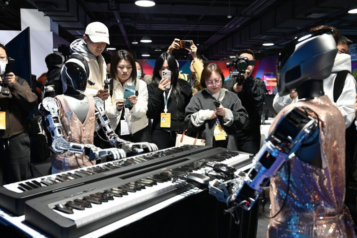 图为钢琴演奏机器东谈主演奏《茉莉花》。(陈菲摄)