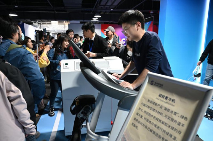 本年论坛年会引入了“凝胶冰雪”新材料,成为绿色科技诓骗的一大亮点。这款源自航天、极地范畴的“凝胶冰雪”手艺,可在-50℃至100℃温度条目下保持结构安逸、永不融解。它不错为札记本电脑、手机等电子开导提供即时散热搞定决议,只需贴在开导后头,就能快速经受热量、镌汰芯片温度,匡助开导在直播、强劲办公等高强度场景下安逸运行、延迟续航。新闻中心展示的一款跑步机配套开导也相通诓骗了“凝胶冰雪”手艺。跑步时,“凝胶冰雪”连续储存冷量,为指令环境连续降温,让指令体验更阴凉恬逸。新闻中心的机房,也通过吊挂柔性冰板,高效经受开导产生的热量,镌汰空调运行负荷,确保论坛线上直播、数据交互及智能系统安逸运行。